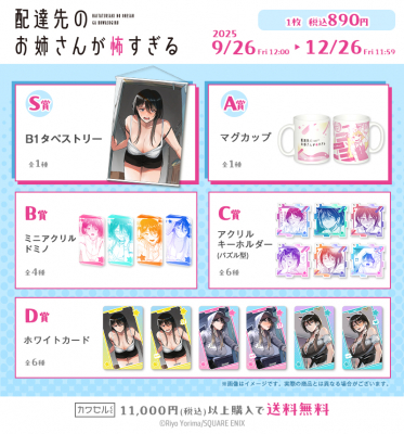 株式会社インクルーズ(東京都渋谷区、代表取締役社長 山﨑 健司)が企画・運営するフィジカルグッズのオンラインくじ「カワセルくじ」にて、9月26日(金)より、「配達先のお姉さんが怖すぎる」のくじが販売開始になりましたことをご報告させていただきます。