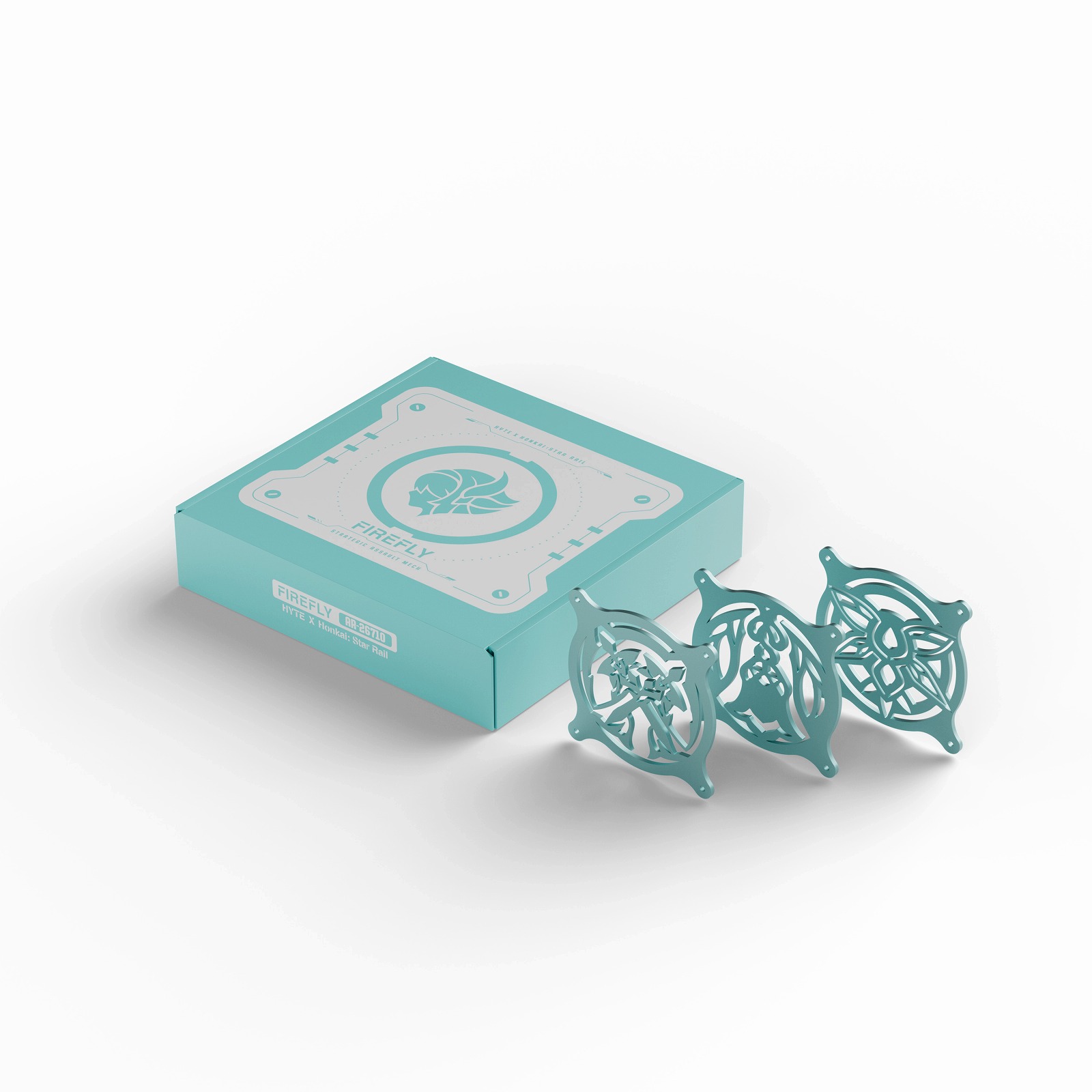HYTE Firefly Fan Shroudは、『崩壊:スターレイル』とHYTEのコラボレーションで誕生した限定デザインのファンシュラウドです。「ホタル」をモチーフにしたアイコンとカラーのファンガードで、120mmまたは140mm角のケースファンに対応します。各サイズごとに3種、合計6枚のファンガードが同梱。