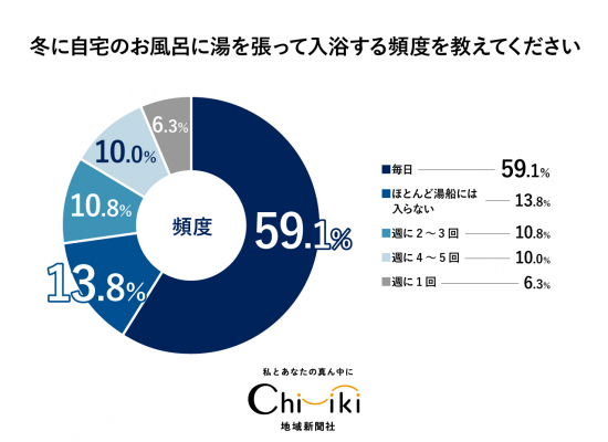 1.冬にお風呂に入る頻度は「毎日」が1位で約60%