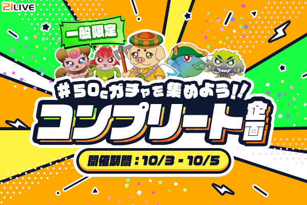 10月3日(金)から10月5日(日)まで、21LIVEでは『50Cガチャを集めよう!!コンプリート企画』を開催します。
