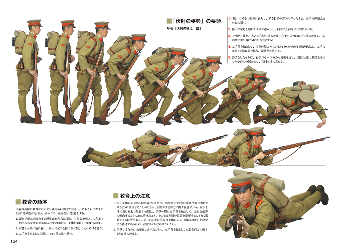 解説文は当時の公文書をもとに現代語で執筆されているほか、諸動作は連続写真を用いて図解されており、日本陸軍下士官兵の姿が誰にでもわかりやすく解説されています。