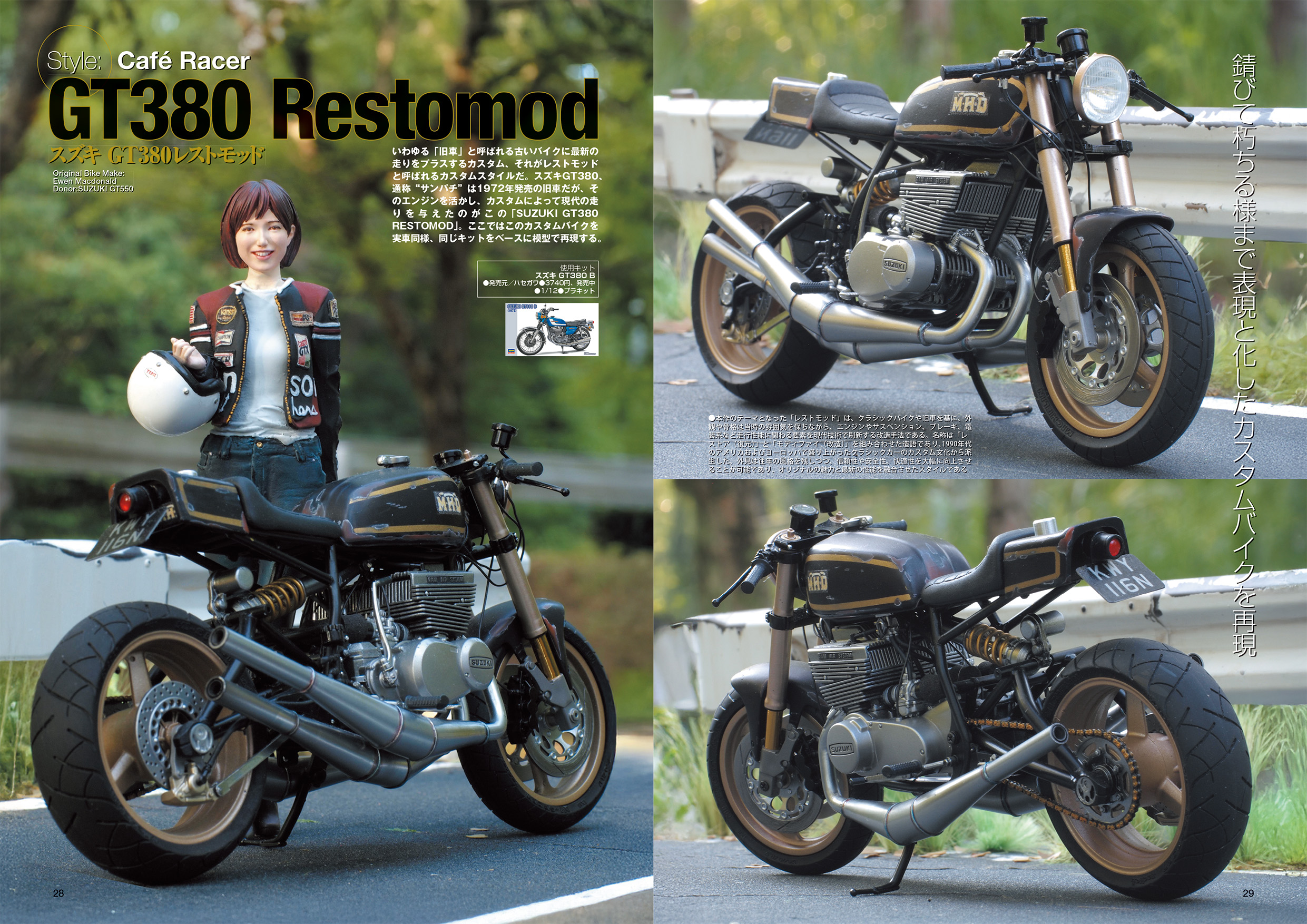 オートバイモデラーのsaruru氏は、自作の1/12オートバイ模型に同スケールのフィギュアを添えて借景で撮影し、リアルな作品を表現しているモデラーです。製作しているオートバイ模型は市販のプラモデルを使いつつも、大改造をほどこし、実際のオートバイの世界に存在する「カスタムビルダー」と呼ばれる人たちがワンメイクで製作する改造車を再現!
