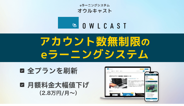 eラーニングシステム、学習管理システム(LMS)の導入をお考えの方は、ぜひ、お気軽にオウルキャストまでお声がけくださいませ。