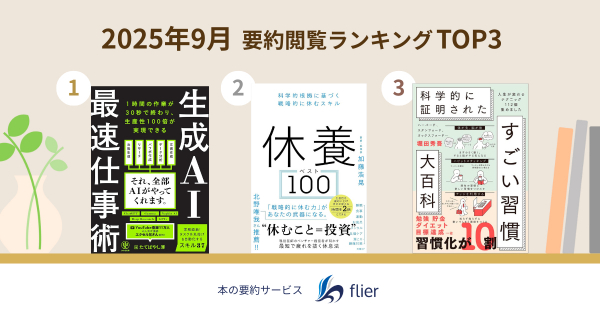 本ランキングは、flierの有料会員を対象に、スマホアプリおよびウェブのアクセス数(紹介書籍の要約閲覧数)を合算し順位付け。集計期間は、2025年8月25日~2025年9月24日です。