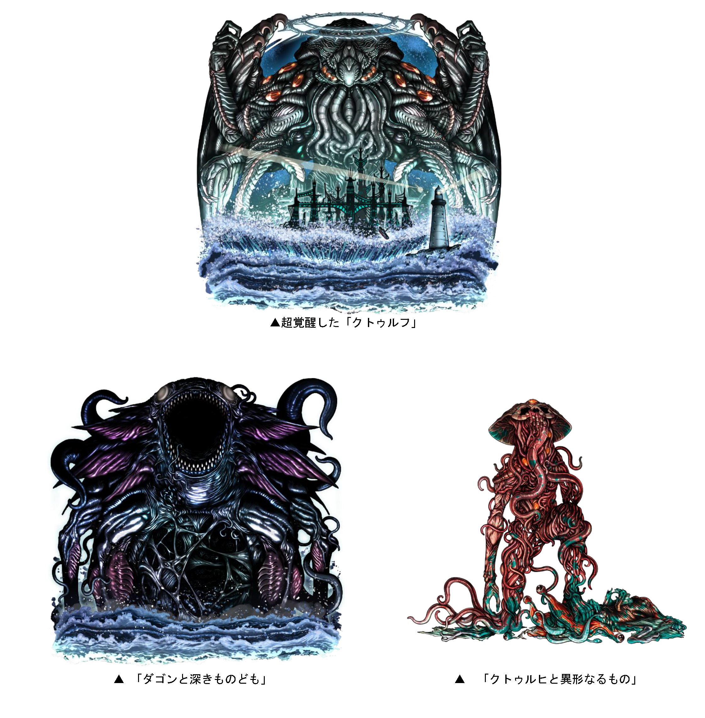 本ダンジョンには、超覚醒した「クトゥルフ」「ダゴンと深きものども」、「クトゥルヒと異形なるもの」が登場!また、クリアした回数に応じて竜石を手に入れることができます。