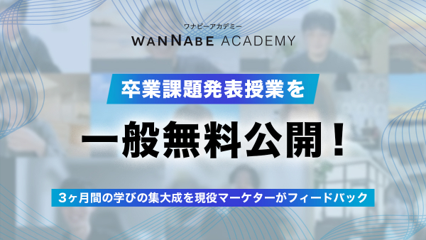 「Webマーケティングを学ぶ」と言っても、具体的に何を学び、どのようなスキルが身につくのかが想像しにくいー。そうした声に応えるべく、受講生が3ヶ月の学びを経て挑戦する卒業課題発表の様子を、受講生以外にも無料で公開することといたしました。