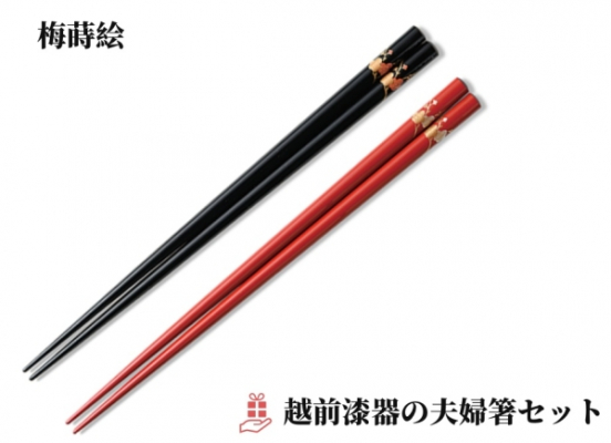 【ペアギフトに最適】越前塗り 梅蒔絵~夫婦箸セット