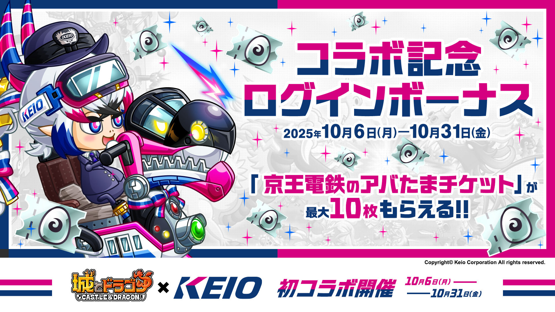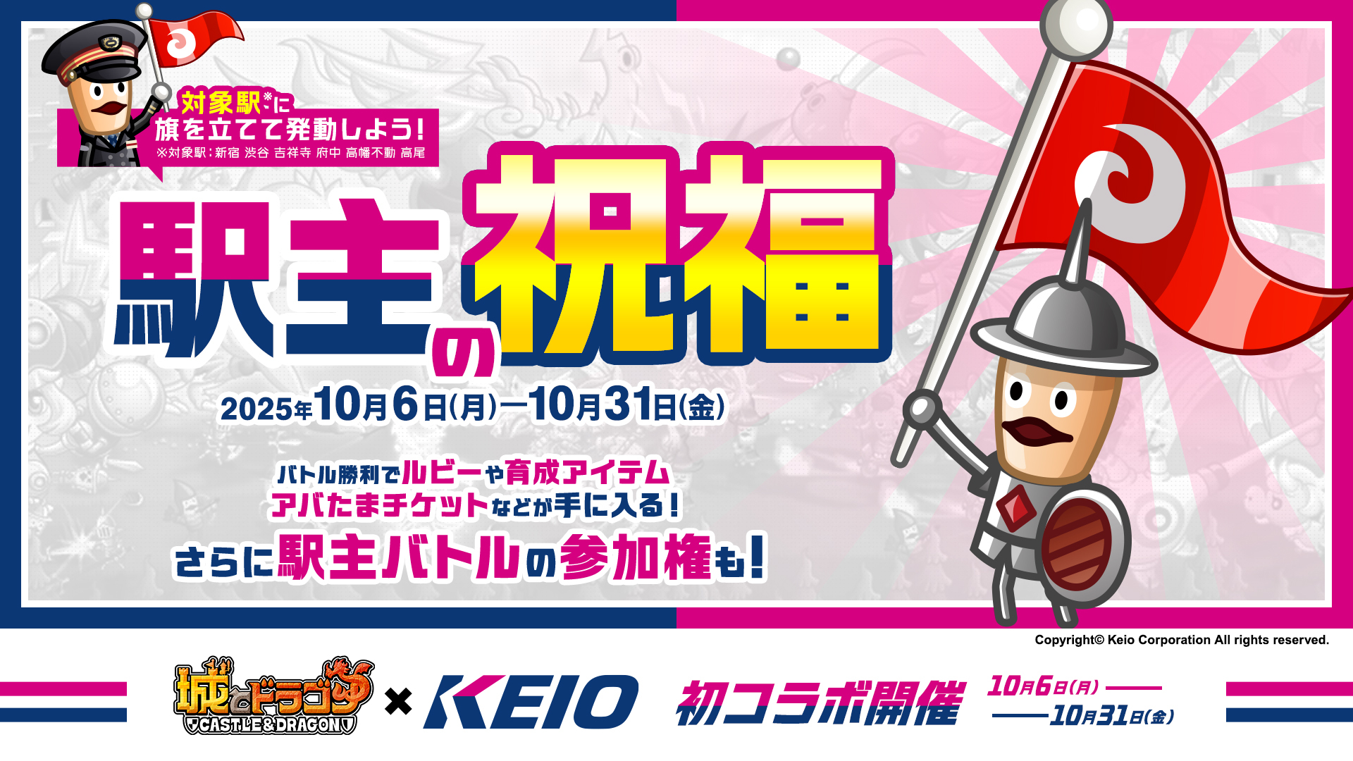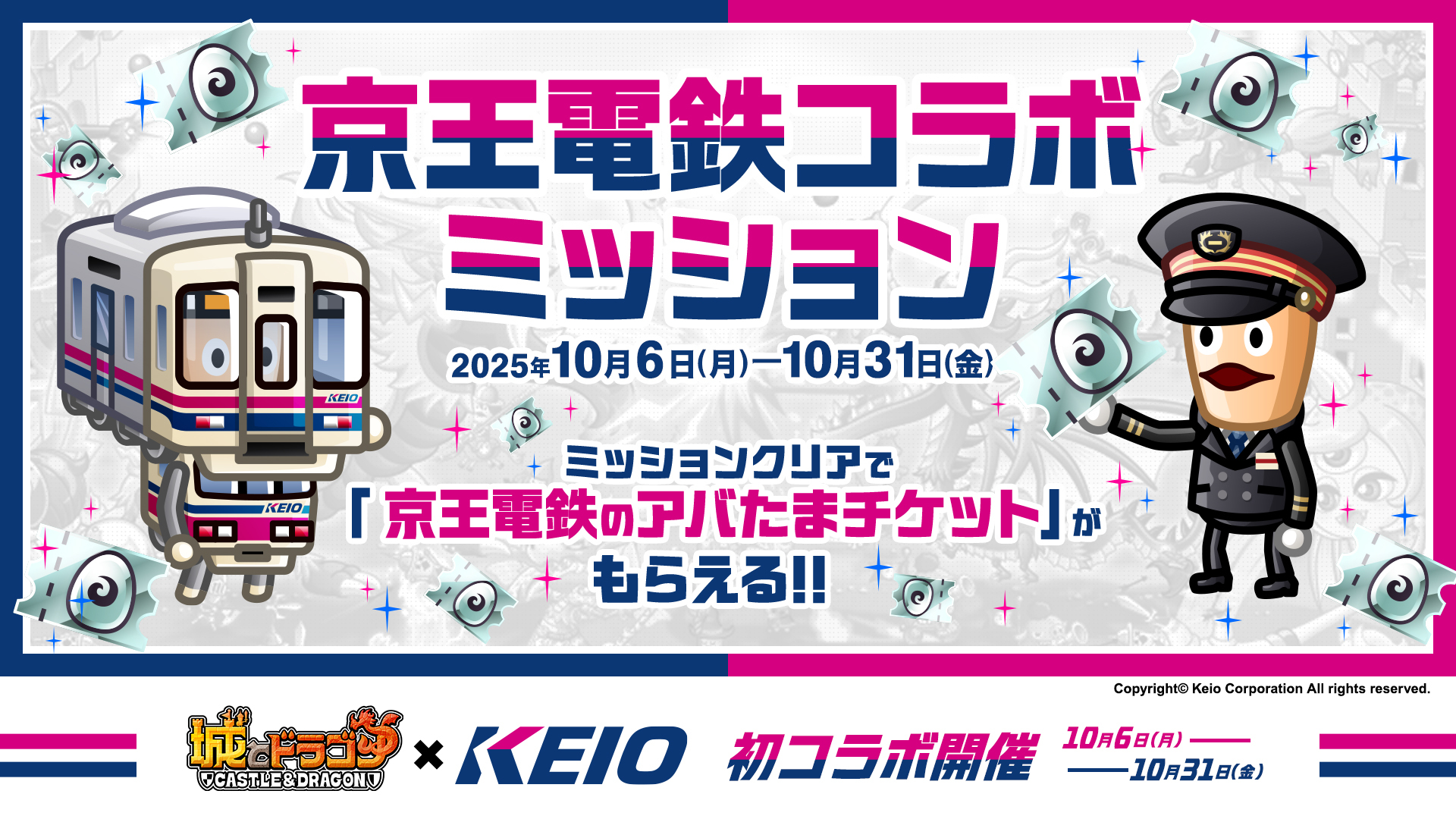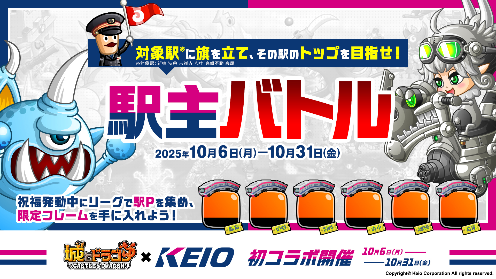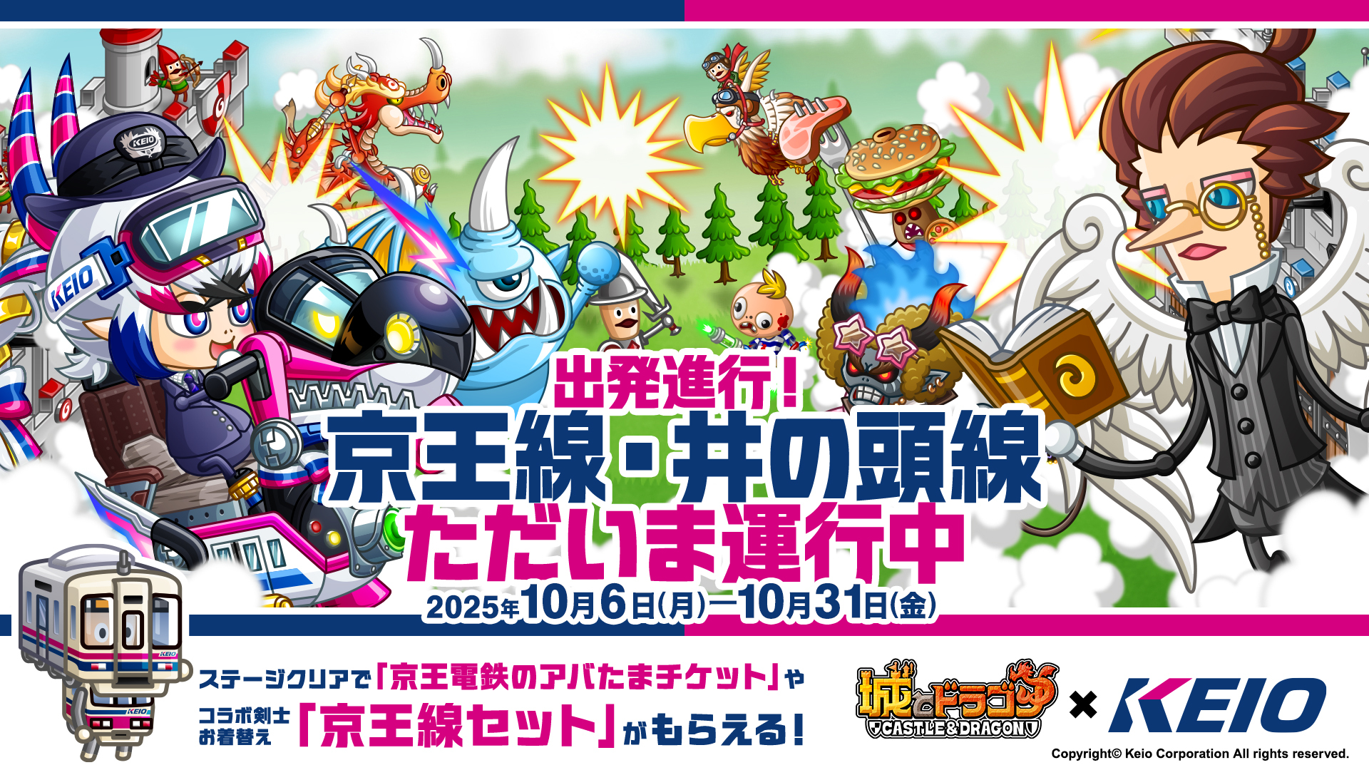 株式会社アソビズム(本社:東京都千代田区、代表取締役:大手智之)は、App Store・Google Playにて好評配信中の『城とドラゴン』で、『京王電鉄』との初のコラボイベントを2025年10月6日(月)10:00より開催いたします。