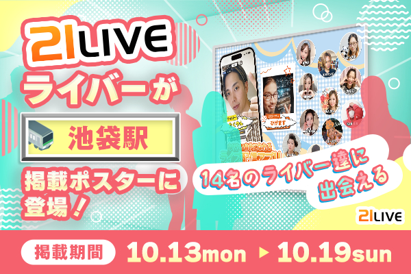 10月13日(月)から10月19日(日)までの1週間、東京・池袋駅構内にて21LIVEの広告ポスターが掲出されます。