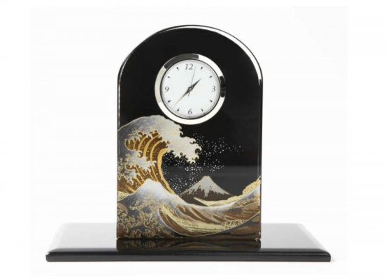 【紀州漆器】蒔絵ガラス置時計 波裏