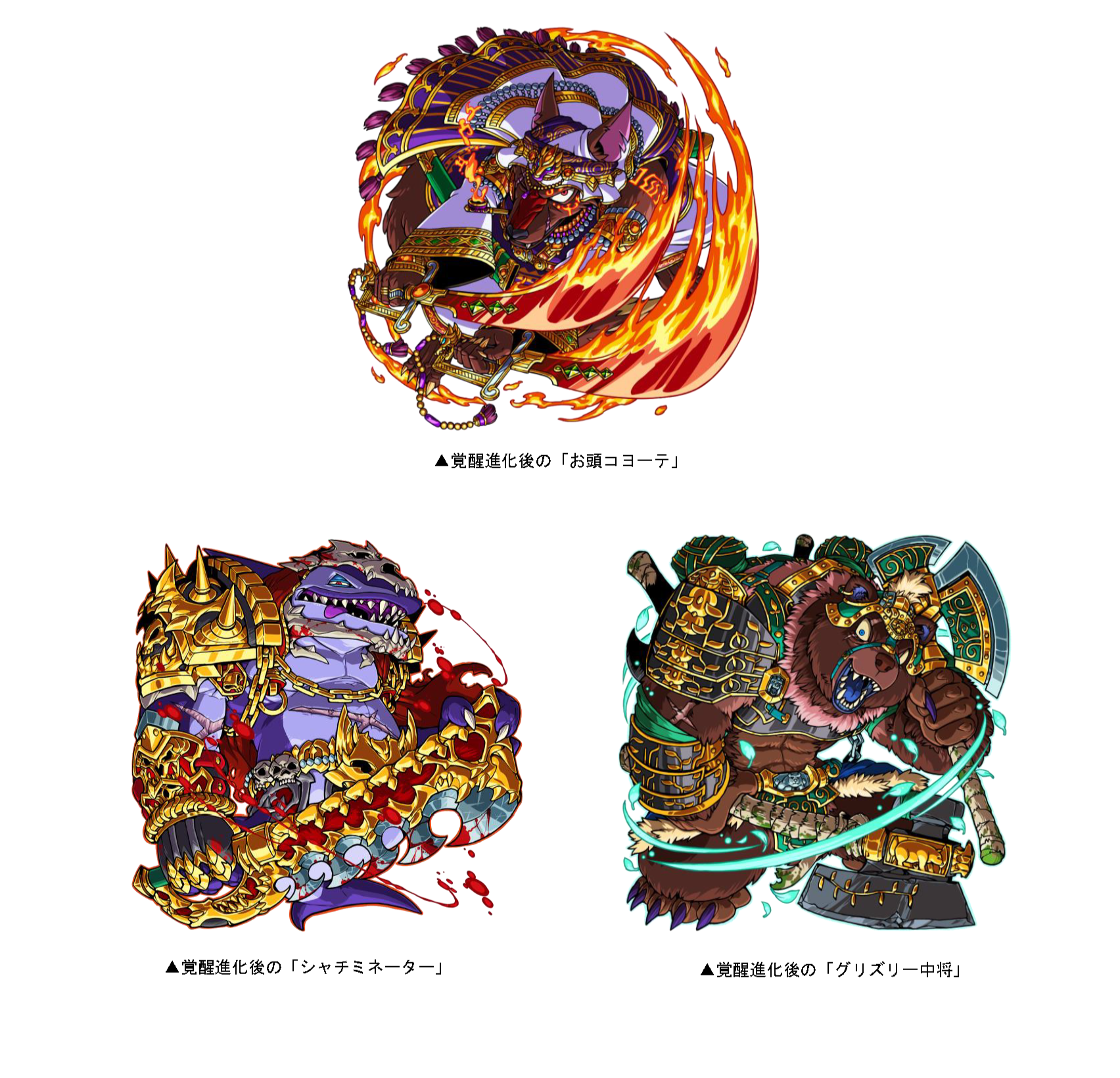 10月10日(金)より、チャレンジダンジョン「猛き覚醒の刃」を開催いたします。本ダンジョンでは、覚醒した「お頭コヨーテ」「シャチミネーター」「グリズリー中将」がボスモンスターとして登場し、プレイヤーの前に立ちはだかります。ダンジョンで覚醒進化素材を手に入れ、モンスターを覚醒させましょう!