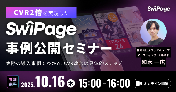 本セミナーでは、実際に SwiPage を導入し CVR を2倍に改善した事例を中心に、具体的な活用方法と成果が出たポイントを余すことなくご紹介いたします。