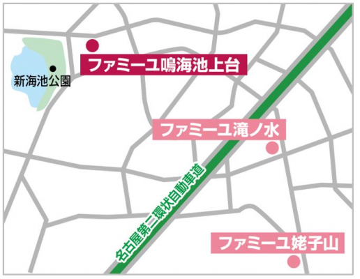 (地図)名古屋市緑区内のファミーユホールは累計3店舗の展開