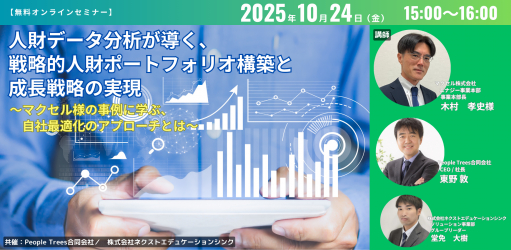 科学的なデジタル技術を駆使して、企業人財のスキル・コンピテンシーアセスメント、教育研修、組織人財分析コンサル専門の教育サービスベンチャーの株式会社ネクストエデュケーションシンク(略称:NET)(本社:東京都文京区、執行役員・社長:捧智哉)は、People Trees合同会社と共催にて、企業の人財戦略推進を支援するオンラインセミナー「人財データ分析が導く、戦略的人財ポートフォリオ構築と成長戦略の実現 ~マクセル社の事例に学ぶ、自社最適化のアプローチとは~」を2025年10月24日(金)に開催いたします。