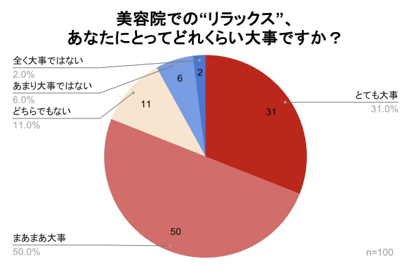 今回のアンケートでは、「美容院でリラックスできることを重視している人」が全体の約8割を占めました。