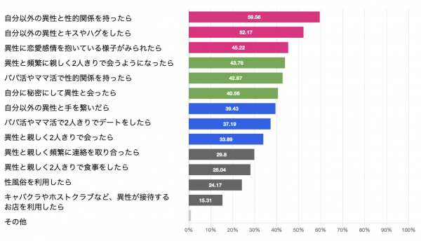 「パパ活ママ活で性的関係を持ったら」浮気と選択した割合