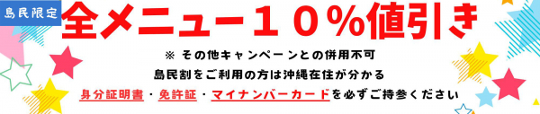 那覇国際通り店の島民限定!全メニュー10%値引きキャンペーン
