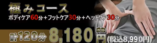 ボディケア60分+フットケア30分+ヘッドケア30分 120分8,180円!