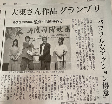 PAG事務局 パワーアクショングロウが製作する特撮ヒーロー映画界のレジェンド、藤岡 弘、と堀田 眞三が声優として出演する日本でパワー系アクション俳優の先駆者、アジアのパワー系アクション俳優の大東 賢監督作品アクション映画「~運送ドラゴン~パワード人間バトルクーリエ」が兵庫県の丹波国際映画祭にノミネートされ、10月13日の授賞式でグランプリ賞(最優秀賞)を獲得しました。
