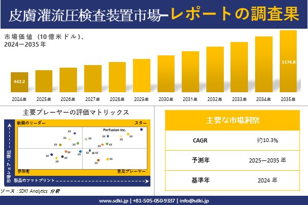 SDKI Analytics(本社:東京都渋谷区)は、このたび、2025年10月10に「皮膚灌流圧検査装置市場調査レポート:2025-2035年の市場規模、シェア、傾向の予測」を発表しました。皮膚灌流圧検査装置に関する市場調査レポートには、統計的及び分析的アプローチを使用した予測評価が含まれています。この調査レポートでは、一次及び二次調査方法を使用して分析された主要な業界洞察を通じて将来の傾向を理解できるようにすることで、主要な市場動向を読者に説明しています。