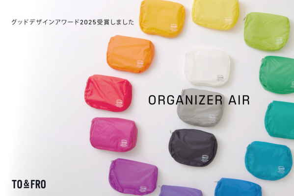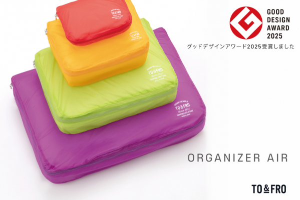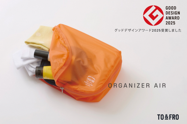 この度、TO&FROの「オーガナイザーエアー」が、2025年度グッドデザイン賞を受賞いたしました。世界最軽量クラスの薄さなのに、丈夫で撥水性を備えた生地を採用した「オーガナイザーエアー」は、TO&FROのコンセプトである"気持ちまで軽くなる軽さ"を体現した定番アイテムで、生地からつくるファクトリーブランドとしての技術とこだわりが凝縮されています。