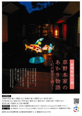 国指定重要文化財草野本家は、幻想的な灯りを用いた夜間特別公開を行います。
