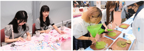 各校のブースでは、在校生スタッフを中心に、試食もできる握り寿司体験や、実際のドレスやヘアマネキンを使用したヘアアレンジやドレスコーディネート体験などを実施。
