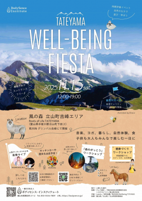 一般社団法人ボディセンス・インスティテュートは、中山間地域の未来をつなぎ、大人から子どもまでが楽しめるイベント「TATEYAMA WELLBEING FIESTA」を2025年11月15日(土)に開催いたします。