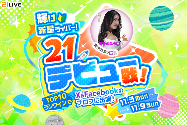 11月3日(月)から11月9日(日)の期間、新人ライバー限定イベント『輝け新星ライバー!21デビュー戦!』を開催します。