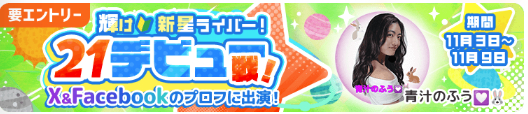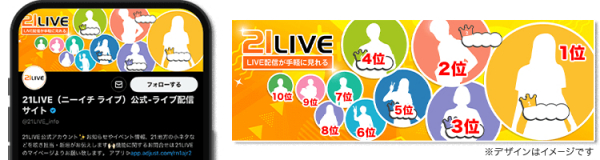 1~10位入賞で、21LIVE公式X&Facebookのプロフィール画像に出演!