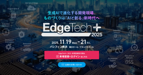 EdgeTech+ 2025は、横浜で開催される日本最大級の組込み・エッジテクノロジー総合展示会です。事業変革期を迎えた今、エッジテクノロジーに新たなプラスで顧客起点の価値創出を実現するイベントとなっております。