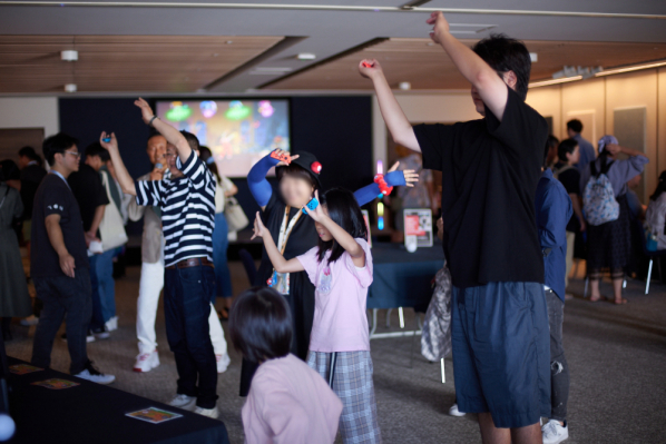11:00~15:00には、「ゲームの力で、人をつなぐ」をテーマに一般開放イベントを実施しました。 来場者は1,500名を超え、異なる色のカードを持つ人同士でチームを組み、パズル、ダンス、テニス、レーシング、格闘など多彩なゲームを楽しみながら交流しました。会場では、初対面の方々が笑顔で会話を交わし、一緒に盛り上がる姿が多く見られました。