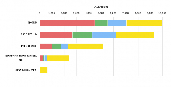 集計の結果、「グローバルスコア 総合力ランキング」は1位 日本製鉄、2位 JFEスチール、3位 POSCO(韓)となりました。