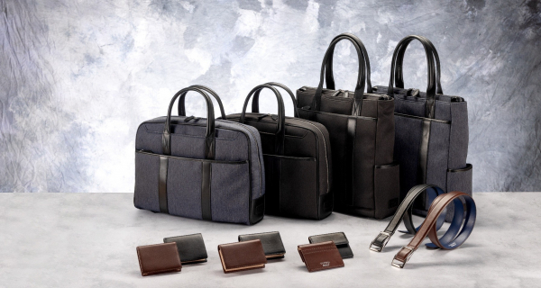 薄くてコンパクトながら機能性も備えた財布は、スーツやジャケットのポケットに入れてもかさばらず、シルエットが崩れません。財布とカードケースの表面のレザーは兵庫県姫路市でなめされたきめ細やかなレザーを敢えて職人が手揉みを施し、独特のシボ感をお楽しみいただけます。内側の革はヨーロッパ産の白ヌメを使用。使い込むほどに飴色に仕上がっていきます。ベルトは、ビジネススタイルにマッチし、かつ使い勝手の良いものを目指し、ベルトピンのない無段階調整タイプを開発しました。お好みの位置で留めることができる優れものです。バッグは、季節を問わず様々な服装に合わせやすいヘリンボン柄の生地を採用し、外装と内装ともに複数の収納ポケットを装備。