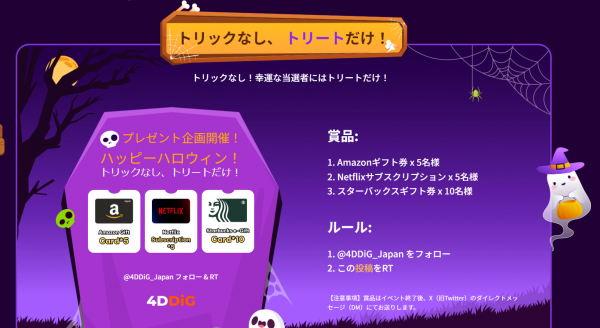今年も4DDiGから、お得な「ご褒美(トリート)」が盛りだくさんのハロウィンセールをお届けします!