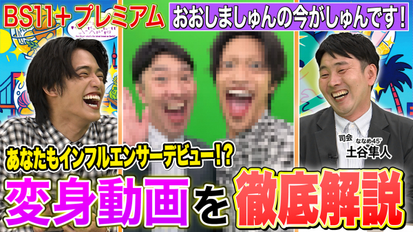 SNSフォローワー数1,500万人超え!人気インフルエンサーのおおしましゅんが、気になるテーマを体験&検証しながら、トレンドを深掘りしていくバラエティ番組!視聴者も一緒に楽しめる“今どきの学びと遊び”をお届け中。生配信や公開収録ご招待、しゅんのイラスト公開ギャラリーやメンバー限定グッズも販売!BS11+プレミアムにて配信中です。