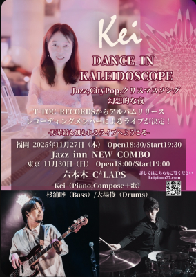 株式会社ティートックレコーズ(本社:東京都渋谷区/ 代表取締役:金野貴明)から昨年12月にニューアルバム『ダンス・イン・カレイドスコープ』をリリースしたジャズピアニストKeiによるリリースライブが決定!