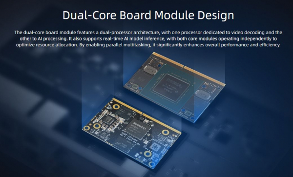 ・ デュアルボード設計:デコード専用とAI処理専用の2プロセッサで並列多重処理。負荷分散により全体効率を向上。