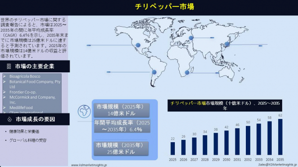 調査レポートはこちら@ https://www.kdmarketinsights.jp/report-analysis/chili-pepper-market/740