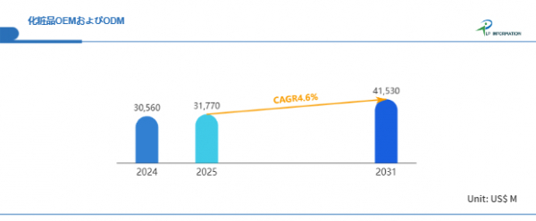 LP Information調査チームの最新レポートである「グローバル化粧品OEMおよびODM市場の成長2025-2031」(https://www.lpinformation.jp/reports/113517/cosmetics-oem-and-odm)によると、2025年から2031年の予測期間中のCAGRが4.2%で、2031年までにグローバル化粧品OEMおよびODM市場規模は418.4億米ドルに達すると予測されている。