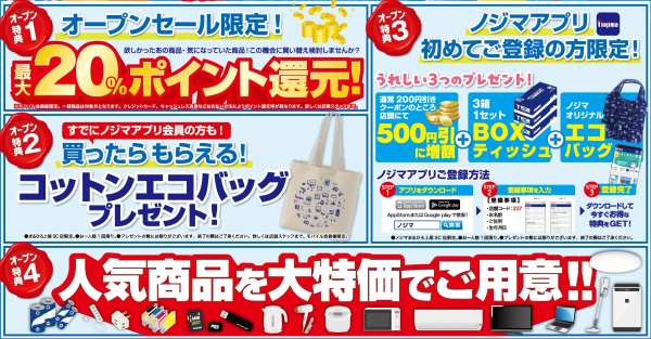 また、ノジマでは10月30日(木)~11月21日(金)の期間中、オープン限定特価としてノジマポイントが20%還元になるお得なセールも開催いたします。皆さまのご来店をお待ちしております!
