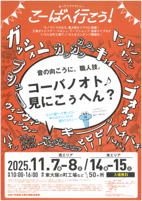 「音の向こうに、職人技。コーバノオト♪見にこぅへん?」を合言葉に、工場から聞こえる音の向こうで何が作られているのか、その技術や職人の技を五感で感じてもらいます。