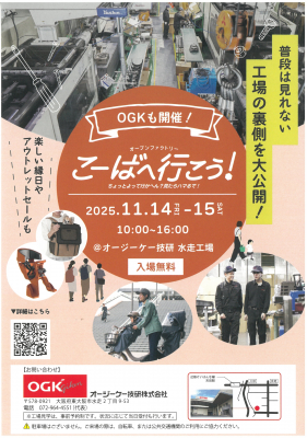 自転車用チャイルドシート国内シェアトップのオージーケー技研株式会社(本社:大阪府東大阪市、代表取締役:木村 泰治)は、11月14・15日に開催される東大阪の町工場など約50カ所を巡るオープンファクトリー「こーばへ行こう!」(東エリア)に参加します。今年は「音」をテーマに、普段は公開していない工場見学や組立体験、理想のチャイルドシートアイデアコンテスト、町工場の廃材を活用したアート展示などを実施します。東大阪のものづくり企業と連携し、地域活性化や地域住民とのより良い関係づくりを目指します。