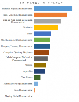 第13章では、ヘパリン原薬市場の主要メーカーについて、基本情報、製品仕様と用途、販売量、収益、価格設定、粗利益率、主力事業、最近の動向などの詳細情報を紹介します