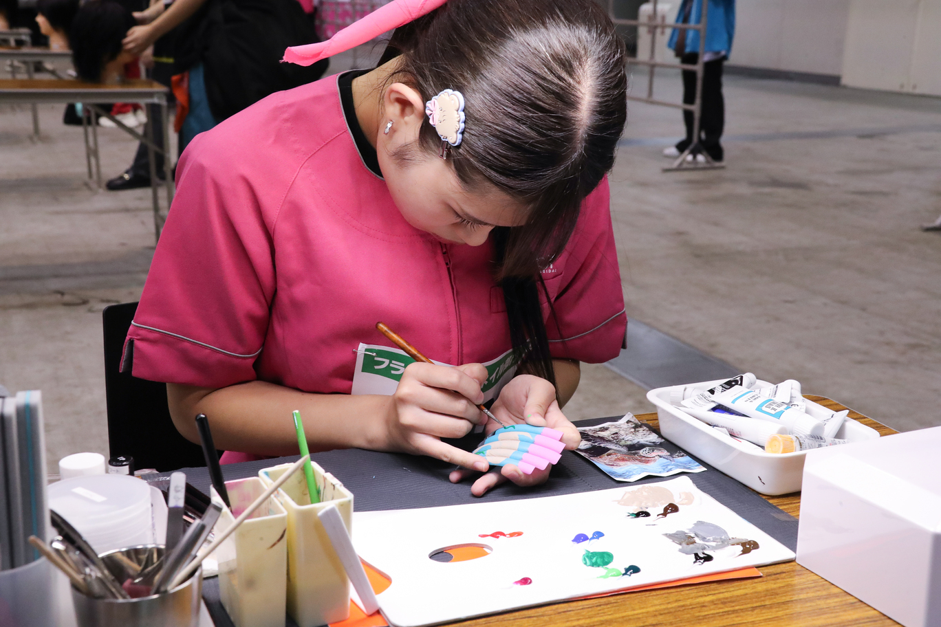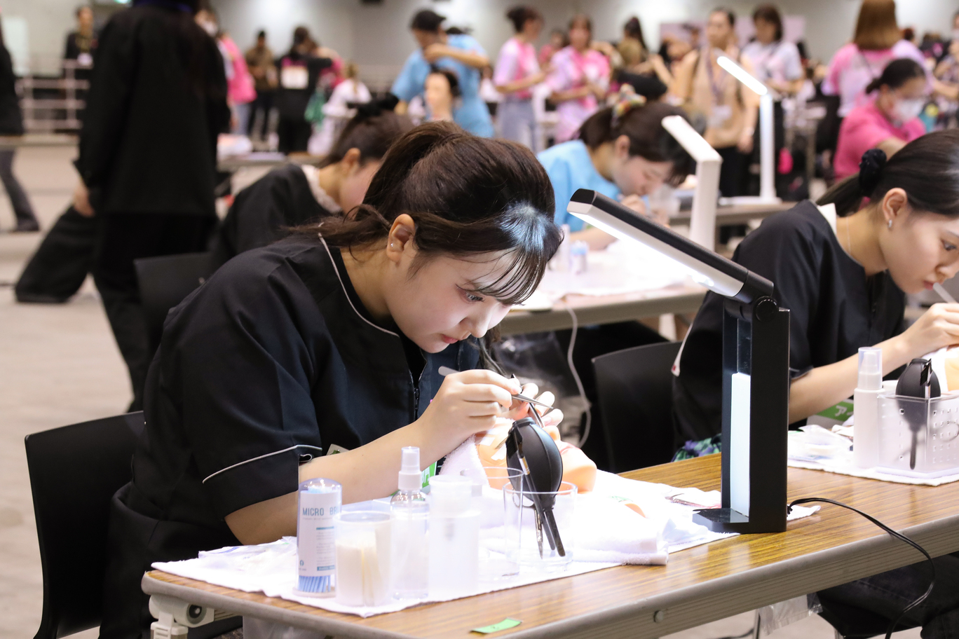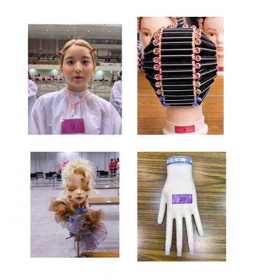 コンテスト種目は、ワインディング・国家試験カット・フリーデザインカット・アイラッシュ・1級スカルプチュア・フラットアートネイル・メイクアップ・エステ基本・エステ応用・クリエイティブ系フォト・ネイルフォト・卒業生フォト・サロンモデルプレゼンテーション・高校生部門の14種目です。