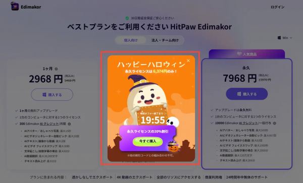 現在、HitPaw Edimakorではハロウィン期間限定の20%オフキャンペーンを実施中です。