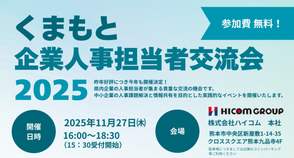 対 象:熊本県内の企業・自治体の人事ご担当者・経営者