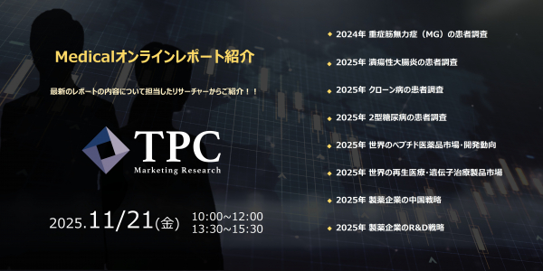 リサ・リューション事業を展開するTPCマーケティングリサーチ株式会社(代表取締役社長:松本 竜馬)は、2025年11月21日にMedicalオンラインレポート紹介を開催いたします。