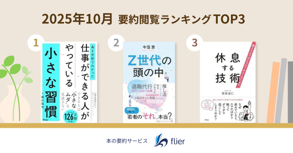 本ランキングは、flierの有料会員を対象に、スマホアプリおよびウェブのアクセス数(紹介書籍の要約閲覧数)を合算し順位付け。集計期間は、2025年9月25日~2025年10月24日です。