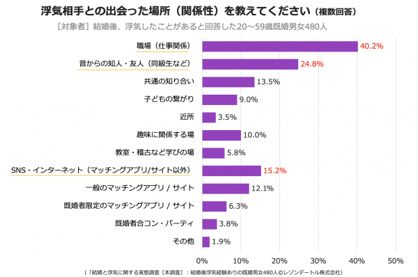 浮気のきっかけに続き、「浮気相手との出会った場所、関係性」について深掘りしていきます。